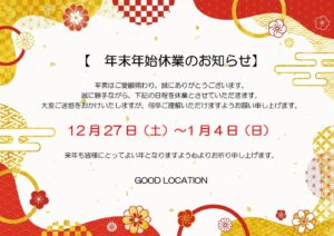 【年末年始休業のお知らせ】 | Good Location